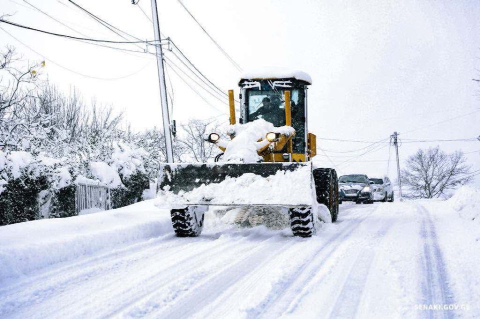 სენაკის მუნიციპალიტეტში, თოვლის საფარისგან გზის გაწმენდითი სამუშაოები, დილიდან, უწყვეტ რეჟიმში მიმდინარეობს