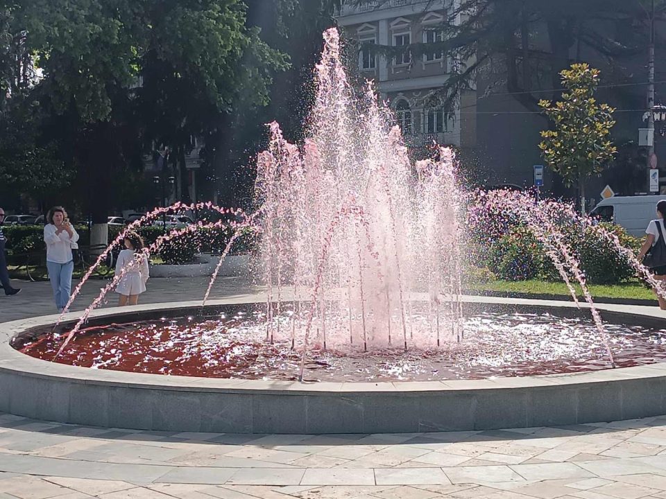 სამოქალაქო აქტივისტებმა ზუგდიდის ცენტრში მდებარე შადრევანში წითელი საღებავი ჩაასხეს