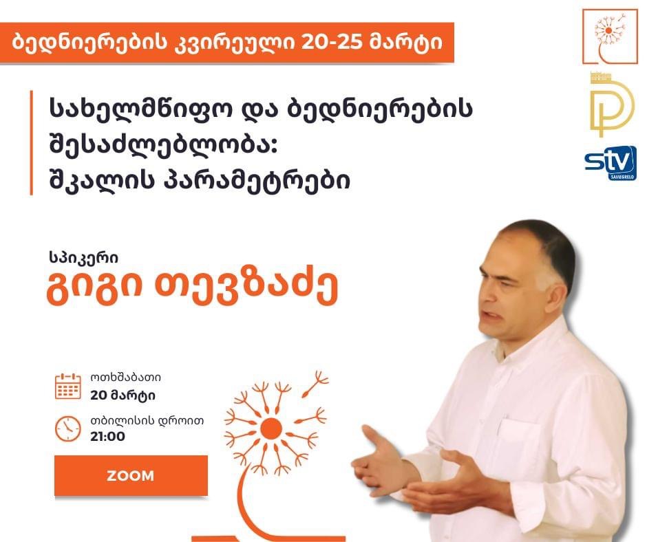 ფილოსოფოსი, 4D კვლევითი ინსტიტუტის დირექტორი გიგი თევზაძე კვირეული ფარგლებში ვებინარს – სახელმწიფო და ბედნიერების შესაძლებლობა: შკალის პარამეტრები – წარმოგვიდგენს. ჩატარების თარიღი: 20 მარტი, 21:00 საათი.