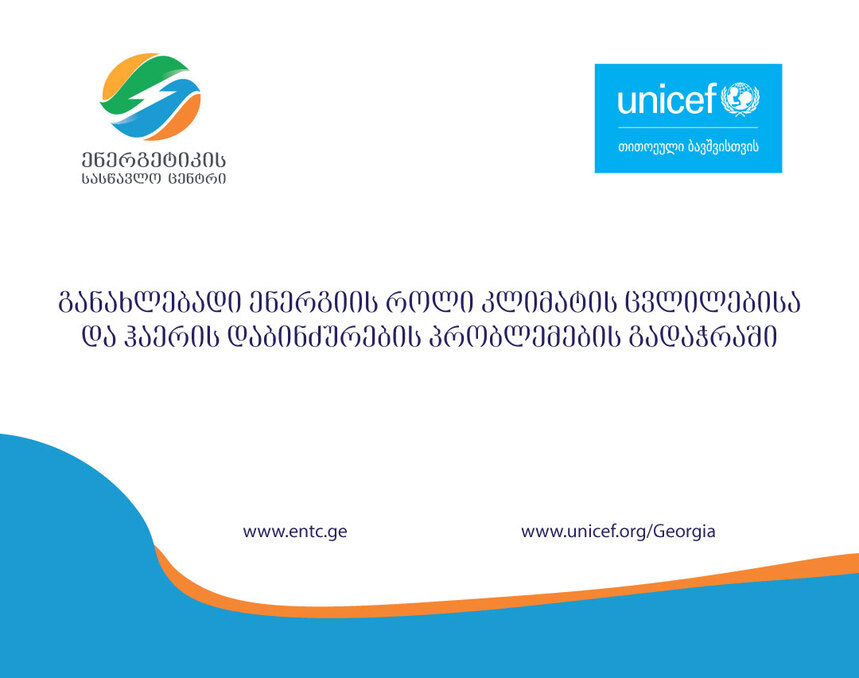გაეროს ბავშვთა ფონდის (UNICEF) მხარდაჭერით, საქართველოს ენერგეტიკისა და წყალმომარაგების მარეგულირებელ ეროვნულ კომისიასთან (სემეკ) არსებულ ელიზბარ ერისთავის სახელობის ენერგეტიკის სასწავლო ცენტრში ახალი ინიციატივა იწყება, რომლის ფარგლებშიც განახლებადი ენერგიის შესახებ საქართველოს სხვადასხვა რეგიონის სკოლების მოსწავლეები აიმაღლებენ ცნობიერებას განახლებადი ენერგიის როლის შესახებ კლიმატის ცვლილებისა და ჰაერის დაბინძურების პრობლემების გადაჭრის საქმეში. ინფორმაციას სემეკი ავრცელებს.
