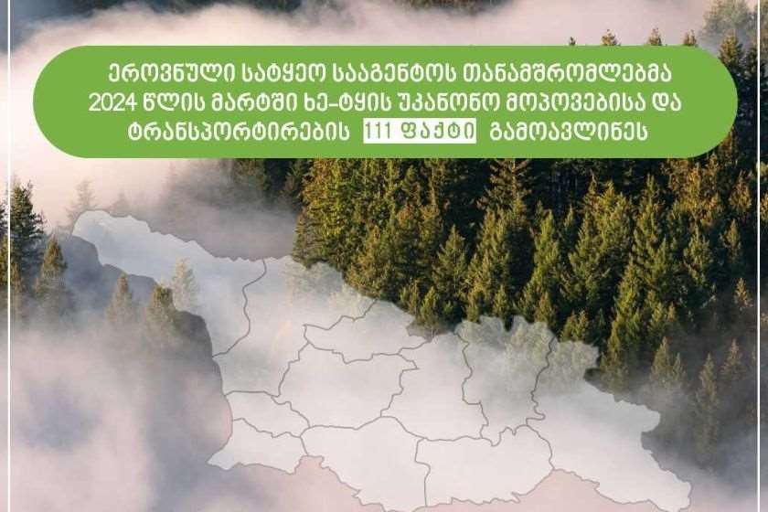 ეროვნული სატყეო სააგენტოს თანამშრომლებმა მიმდინარე წლის მარტში ხე-ტყის უკანონო მოპოვებისა და ტრანსპორტირების 111 ფაქტი გამოავლინეს