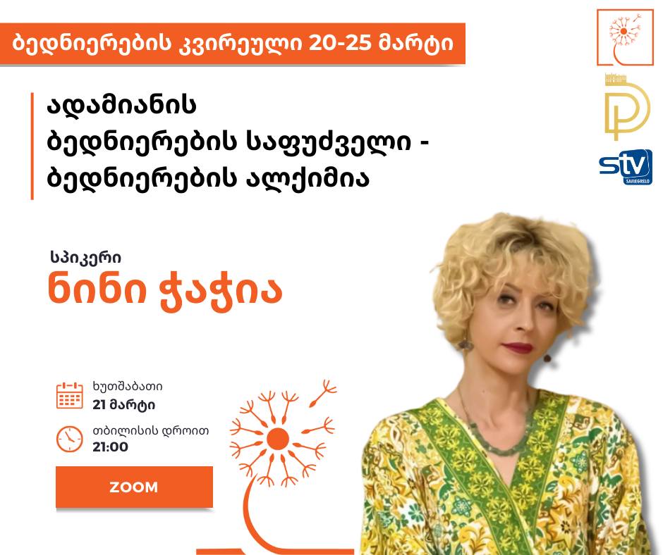ვებინარის თემა: ადამიანის ბედნიერების საფუძველი – ბედნიერების ალქიმია. ვებინარი ჩატარდება 21 მარტს, 21 საათზე.