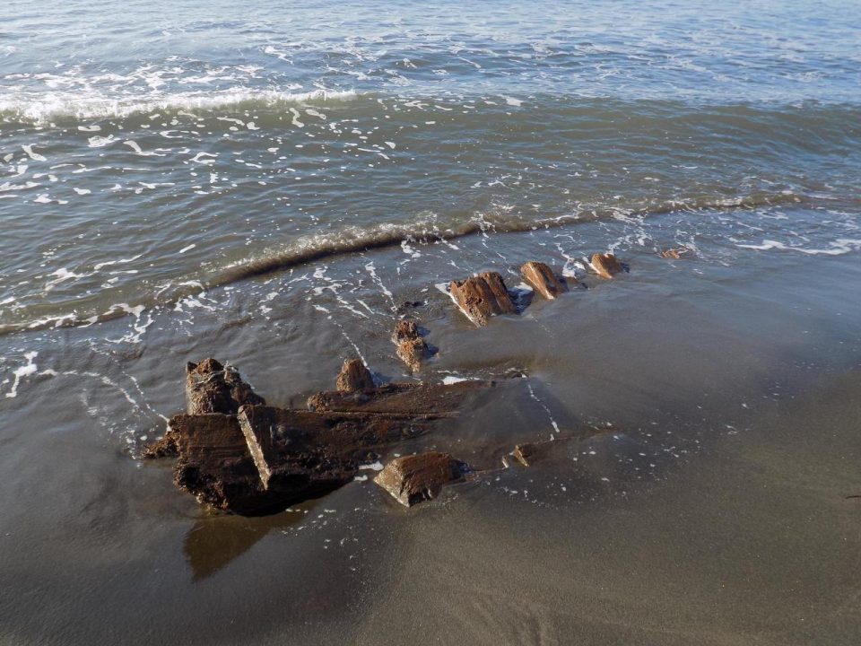 ფოთში, შუქურასთან ახლოს ზღვამ ძველი ნავი გამორიყა.