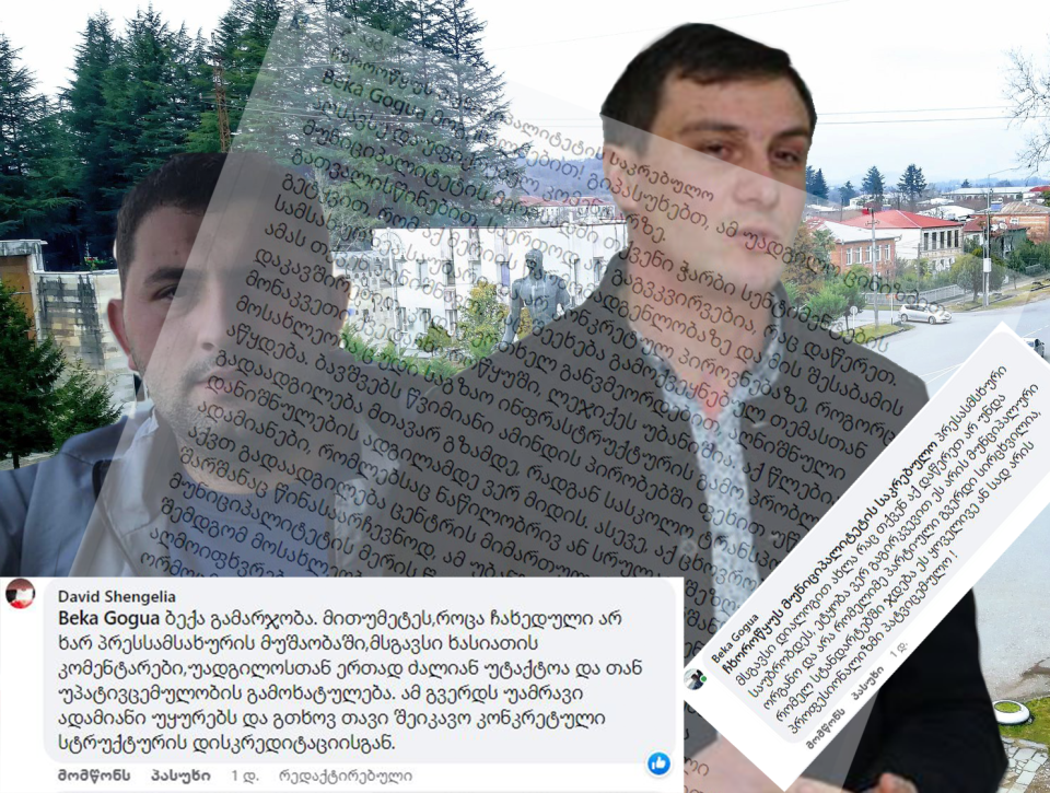 „მუნიციპალიტეტის მერიის დაპირება გარკვეულ მონაკვეთზე ბეტონის გზის დაგების შესახებ ჯერჯერობით დაპირებად რჩება“ – ეწერა აღნიშნულ პოსტში, სწორედ ამ ნაწილთან დაკავშირებით დაწერა ბექა გოგუამ შემდეგი სახის კომენტარი: „სად არჩვეთ ამ ტექსტებს ან რის საფუძველზე წერთ საკრებულოს ოფიცალურ გვერდზე“, რასაც ოფიციალური უწყების გაბრაზება და მოქალაქეზე „შურისძიება“ მოჰყვა.