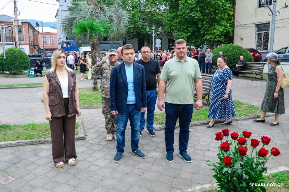 ხსოვნის მემორიალი გვირგვინებით შეამკეს სენაკის მუნიციპალიტეტის მერმა ლევან კუპრეიშვილმა, პირველმა მოადგილემ გრიგოლ ბაღათურიამ, საკრებულოს თავმჯდომარის მოადგილემ ბადრი კალანდარიშვილმა, აგვისტოს ომში დაღუპული სენაკელების ოჯახის წევრებმა, ადგილობრივი თვითმმართველობისა და საზოგადოების წარმომადგენლებმა.