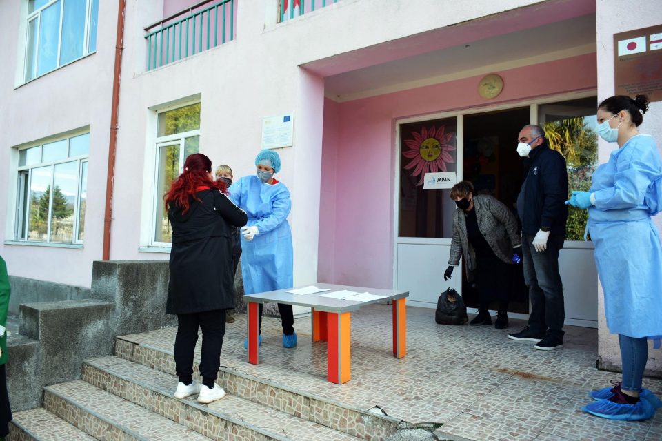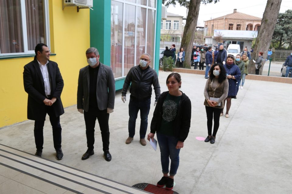სურსათის გაცემის პროცესში ქალაქ ფოთის მერი გოჩა კურდღელია, მერის მოადგილე პაატა ლაგვილავა, მუნიციპალიტეტისა და ა(ა)იპ სკოლამდელი სააღმზრდელო დაწესებულებების თანამშრომლებთან ერთად ჩაერთო.