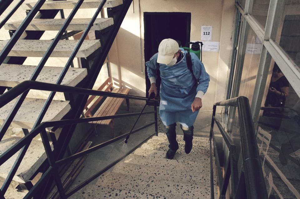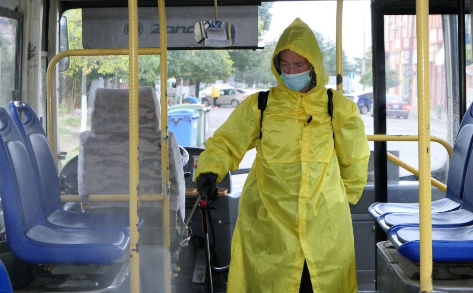 სპეციალური ხსნარით ინტენსიურად მუშავდება საზოგადოებრივი ტრანსპორტი.