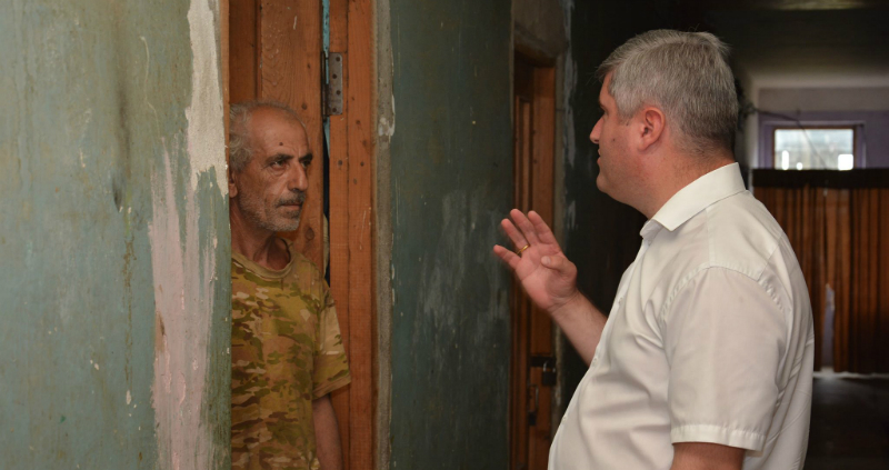 ზუგდიდის მერი სტიქიის შედეგად დაზარალებულ დევნილთა კომპაქტურ დასახლებას ესტუმრა