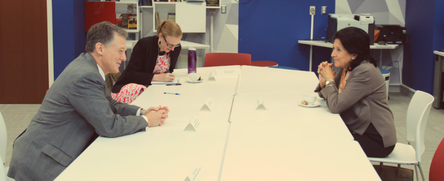 საუბრისას სახელმწიფო მდივანმა სალომე ზურაბიშვილს საპრეზიდენტო არჩევნებში გამარჯვება მიულოცა, სახელმწიფო საქმეში წარმატება უსურვა და იმედი გამოთქვა, რომ ახლად არჩეული პრეზიდენტი ვიზიტს აშშ-ში უახლოეს მომავალში განახორციელებს.