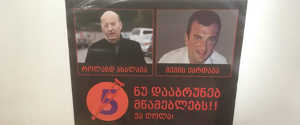 ზუგდიდში მეგის ქარდავას და როლანდ ახალაიას საწინააღმდეგო პლაკატები დილიდან გამოჩნდა
