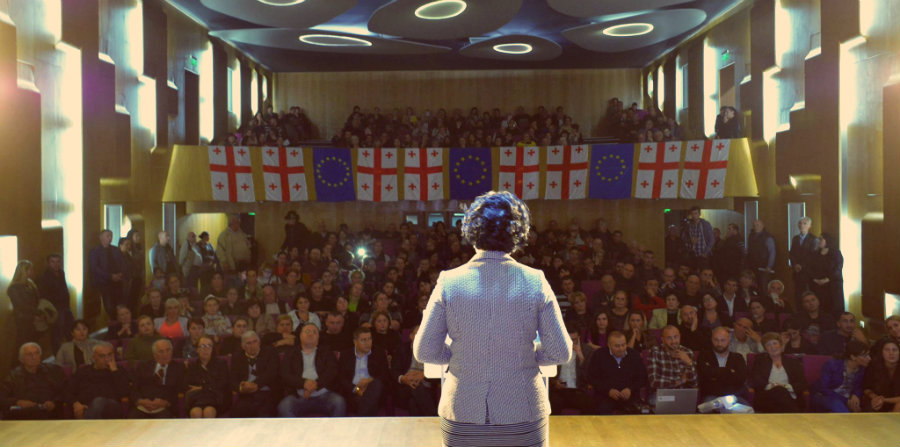 ზუგდიდში, მოსწავლე ახალგაზრდობის სასახლეში პრეზიდენტობის დამოუკიდებელი კანდიდატის, სალომე ზურაბიშვილის საარჩევნო პროგრამის წარდგენა სხვადასხვა თემატური ჯგუფებისთვის ცალ-ცალკე მიმდინარეობს.
