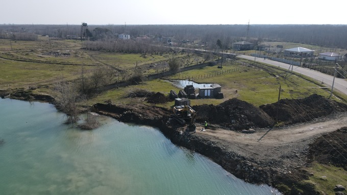 სოფელ ნოჯიხევში სანიაღვრე არხის რეაბილიტაცია მიმდინარეობს